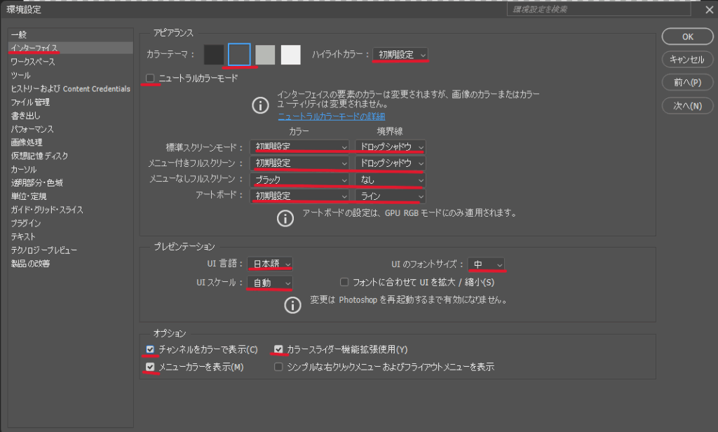 Photoshopを自分の作業スタイルに合わせて使いやすくカスタマイズするための基本的な設定です。