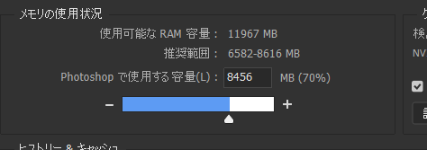 ※動作が重い場合は、ヒストリー数やキャッシュレベルの数値を下げるのが効果的です。