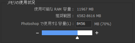 ② パフォーマンス設定 | メモリ使用量を70%程度に設定すると動作がスムーズ |